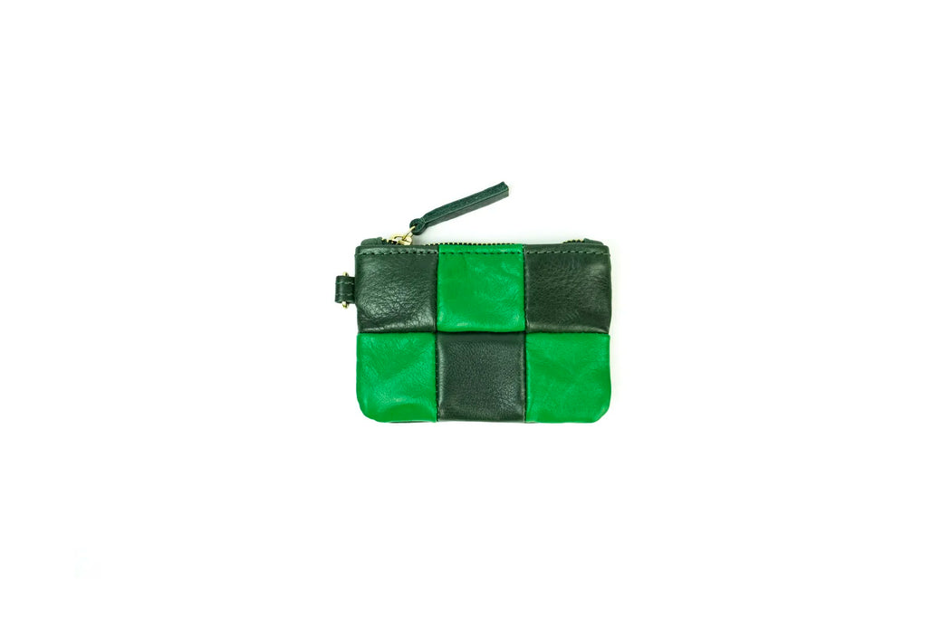 Primecut / Leather Coin Pouch - Dark Green Check