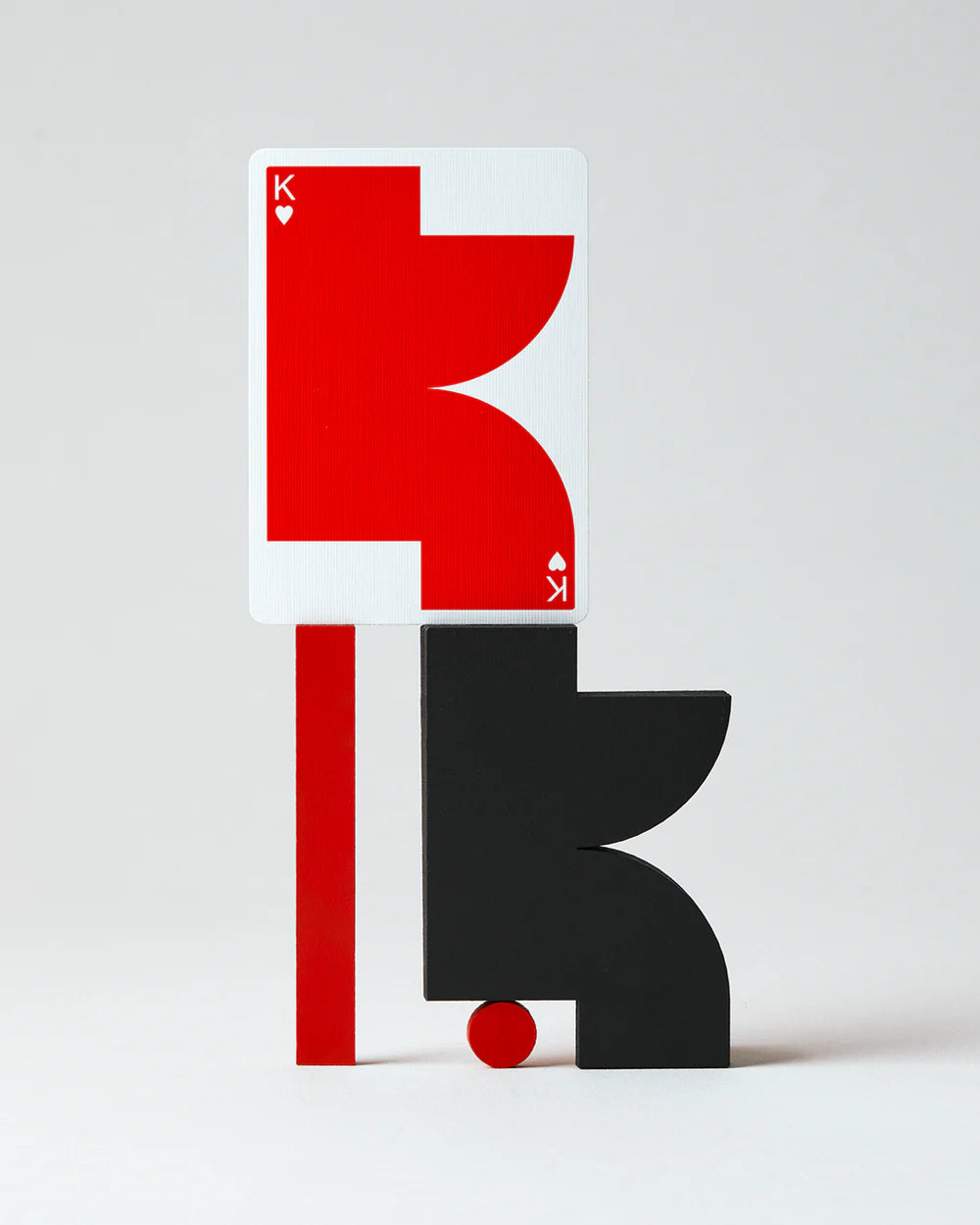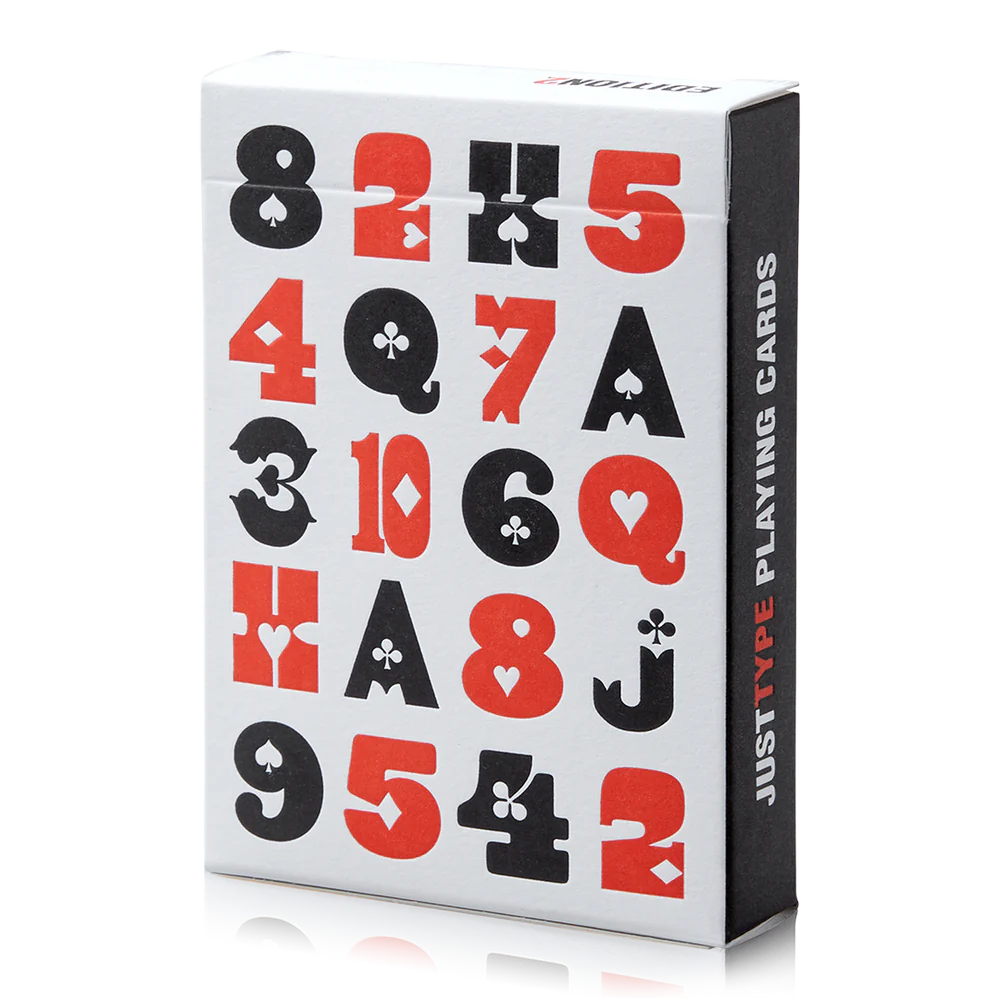 Just Type is a modern reinterpretation of classic playing card design and a tribute to the different ways in which the spirit of type can be modified. Paula Scher, a titan of the graphic design world, has helped to redefine modern typography. Working with fellow Pentagram designers Jeff Close and Kristin Huber, Scher has playfully deconstructed the classic french design of traditional “playing cards” and removed all extraneous elements. All that’s left is Just Type.