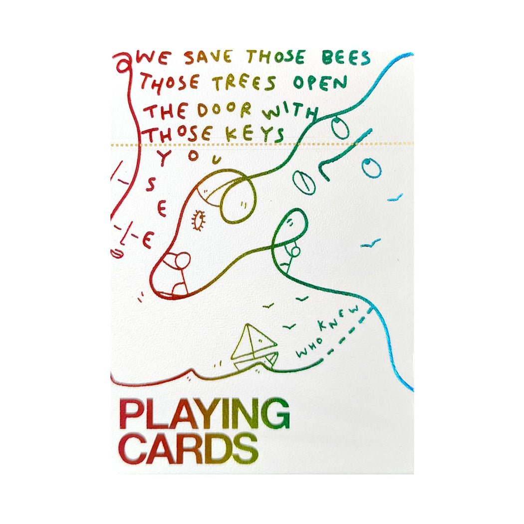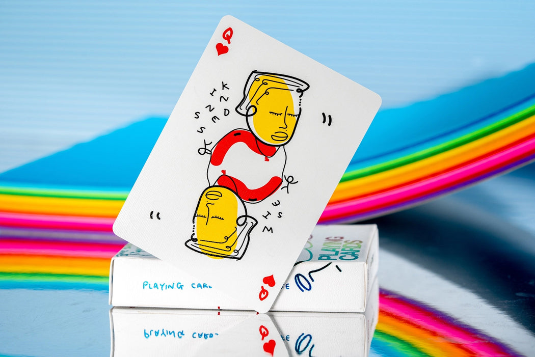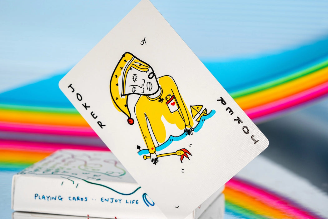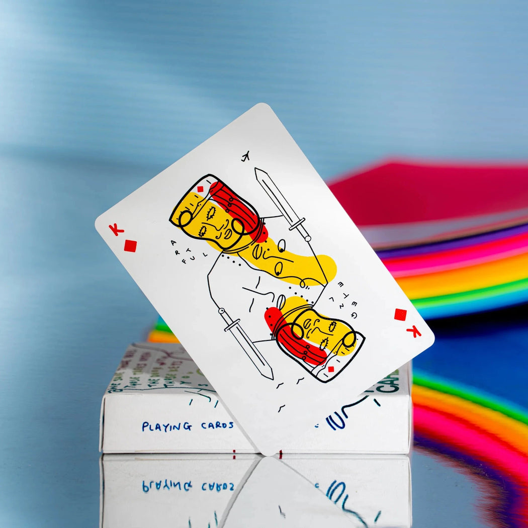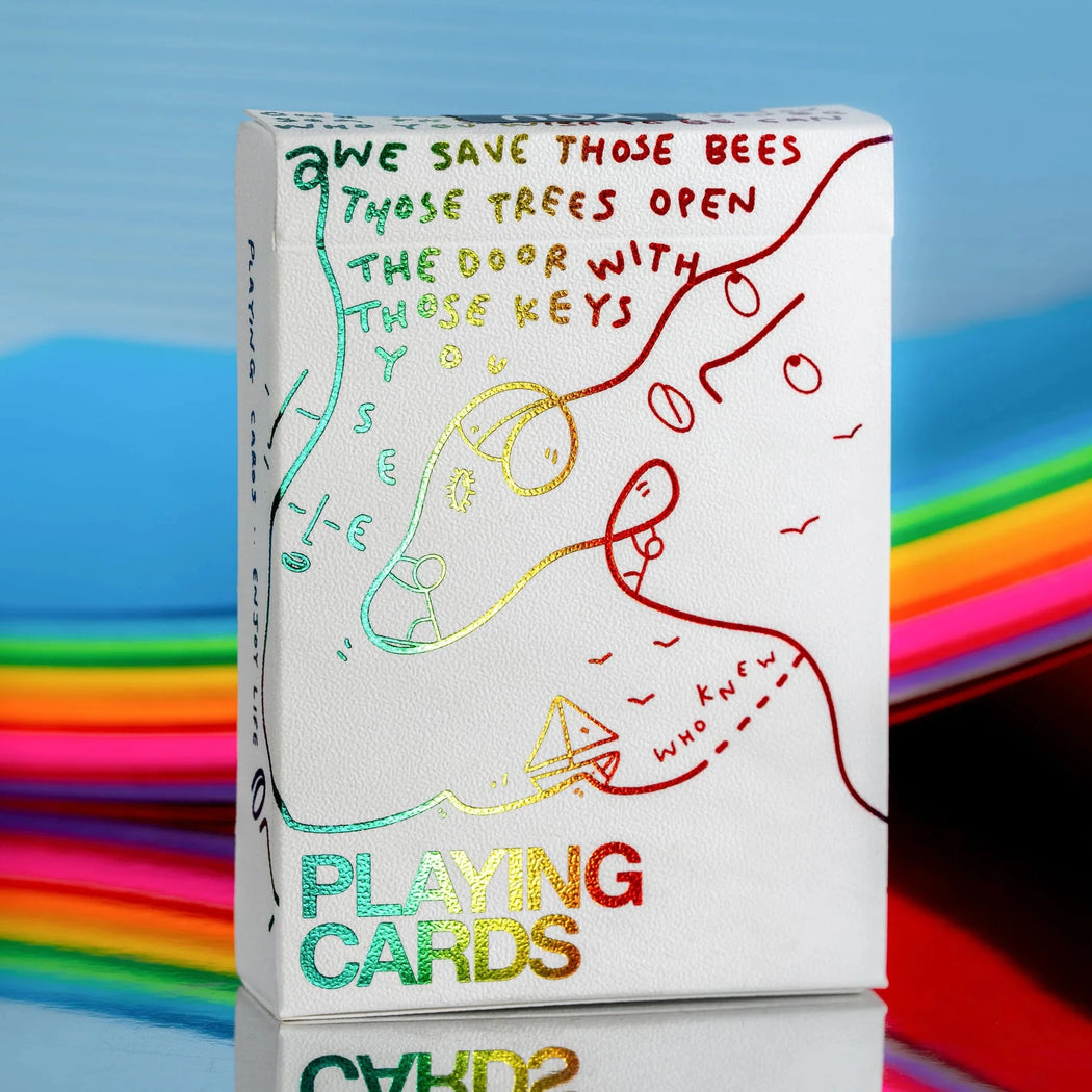 Shantell Martin Playing Cards feature a fully custom design inside and out, exhibiting her wonderfully crafted storytelling at every inch. The cards themselves are carefully framed in canvas-textured, blind embossed paper with holographic, rainbow reflective foil.