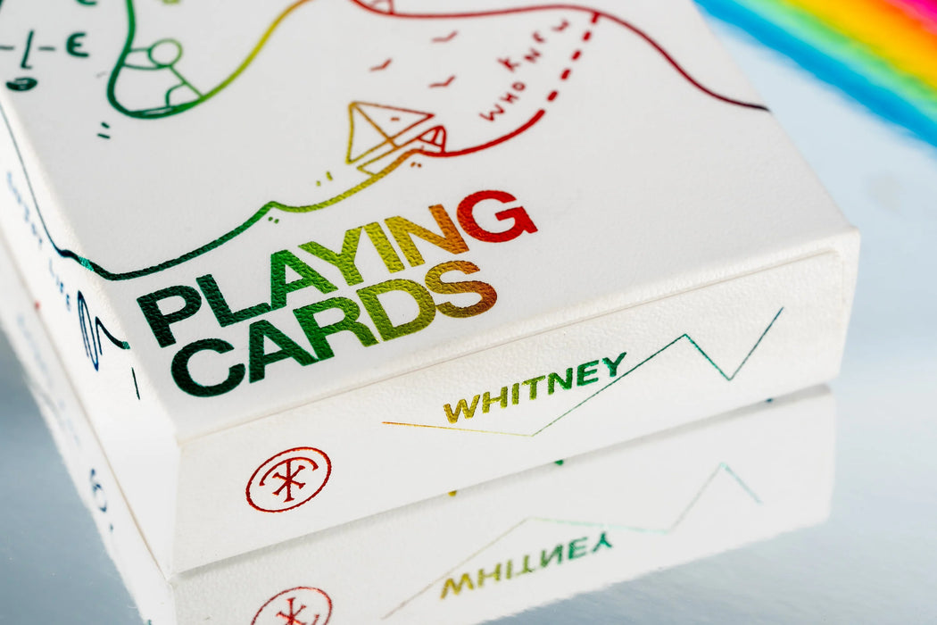 A new, holographic foil limited edition presented in collaboration with The Whitney Museum of American Art. These limited edition playing cards feature holographic, rainbow reflective foil on the outer packaging, and silver holographic foil on the back of each card within the deck.