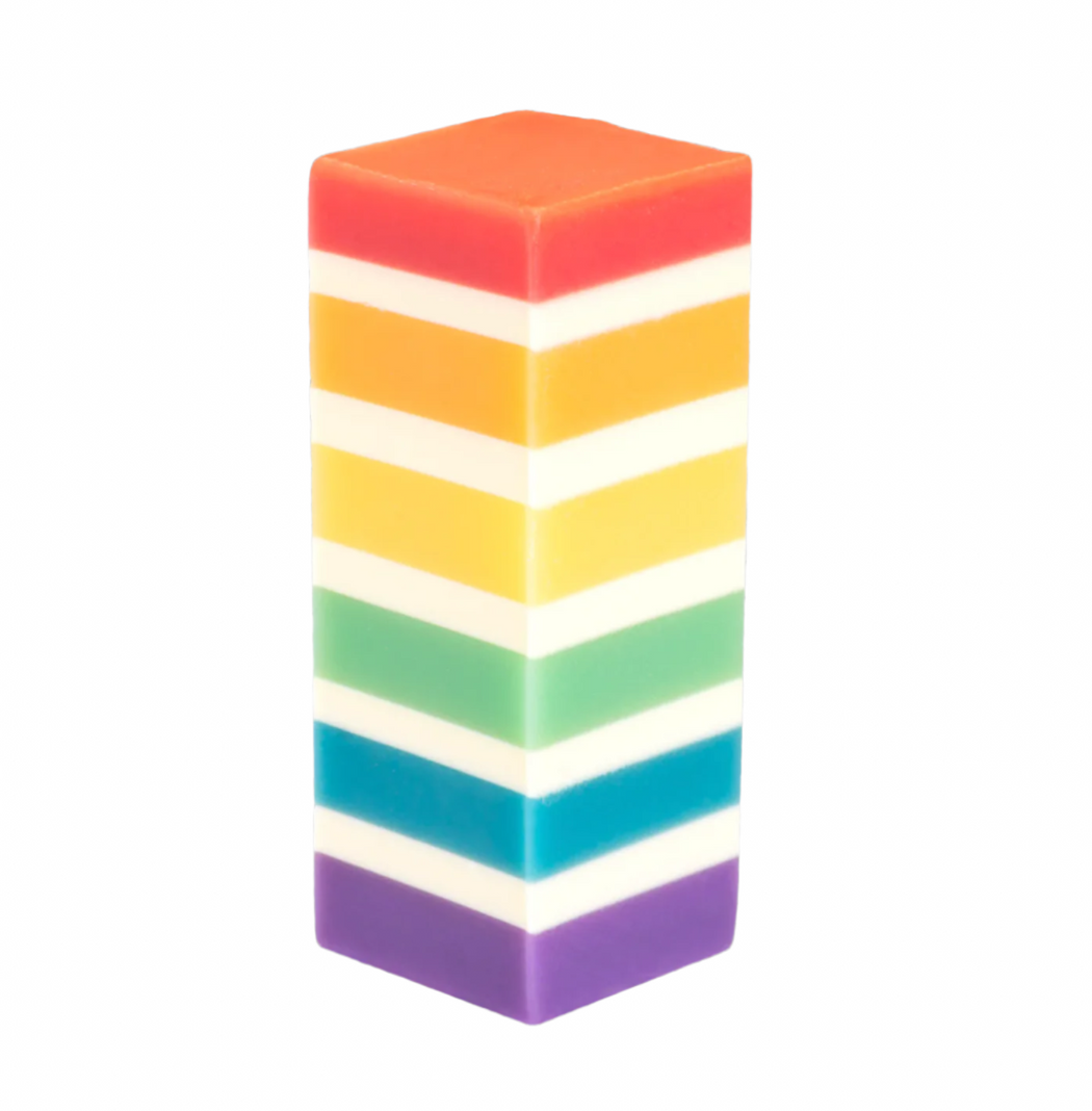 This beautiful rainbow soap was made to reflect the pride flag and show support for the LGBTQ+ community. Judy's mixture of orange, lime and litsea oil is one of our favourite scents and it won’t disappoint.