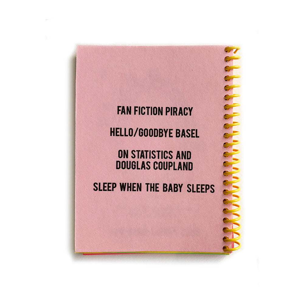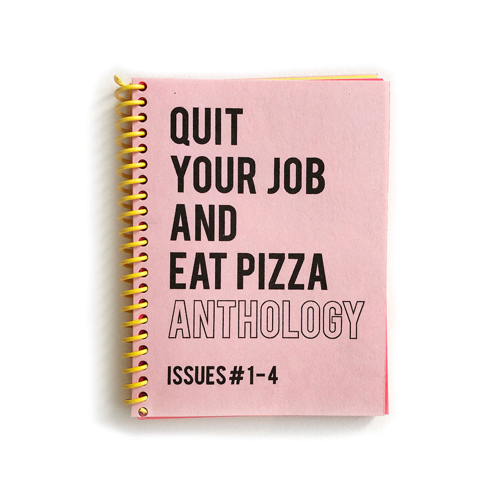 Collects the first four issues of the long-running, infrequently released personal zine (“perzine”) Quit Your Job And Eat Pizza. Risograph printed and spiral bound.