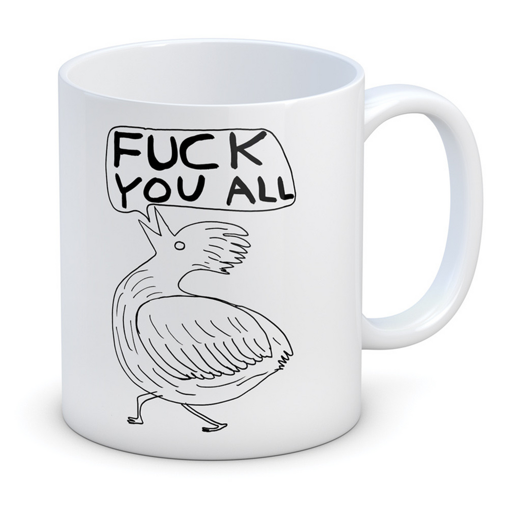 David Shrigley (b.1968, UK) works across drawing, painting, sculpture, installation, photography, animation, and print. He publishes books, produces music, occasionally designs tattoos and creates all manner of other paraphernalia.