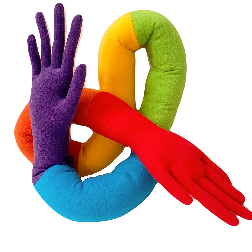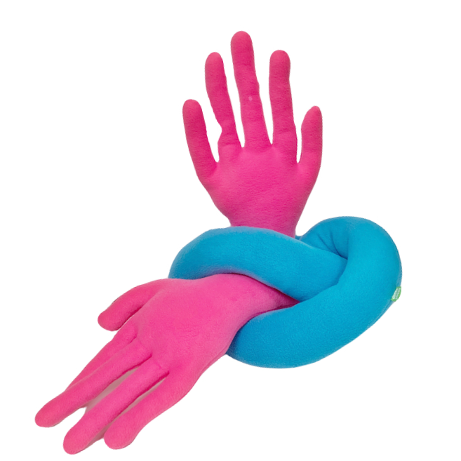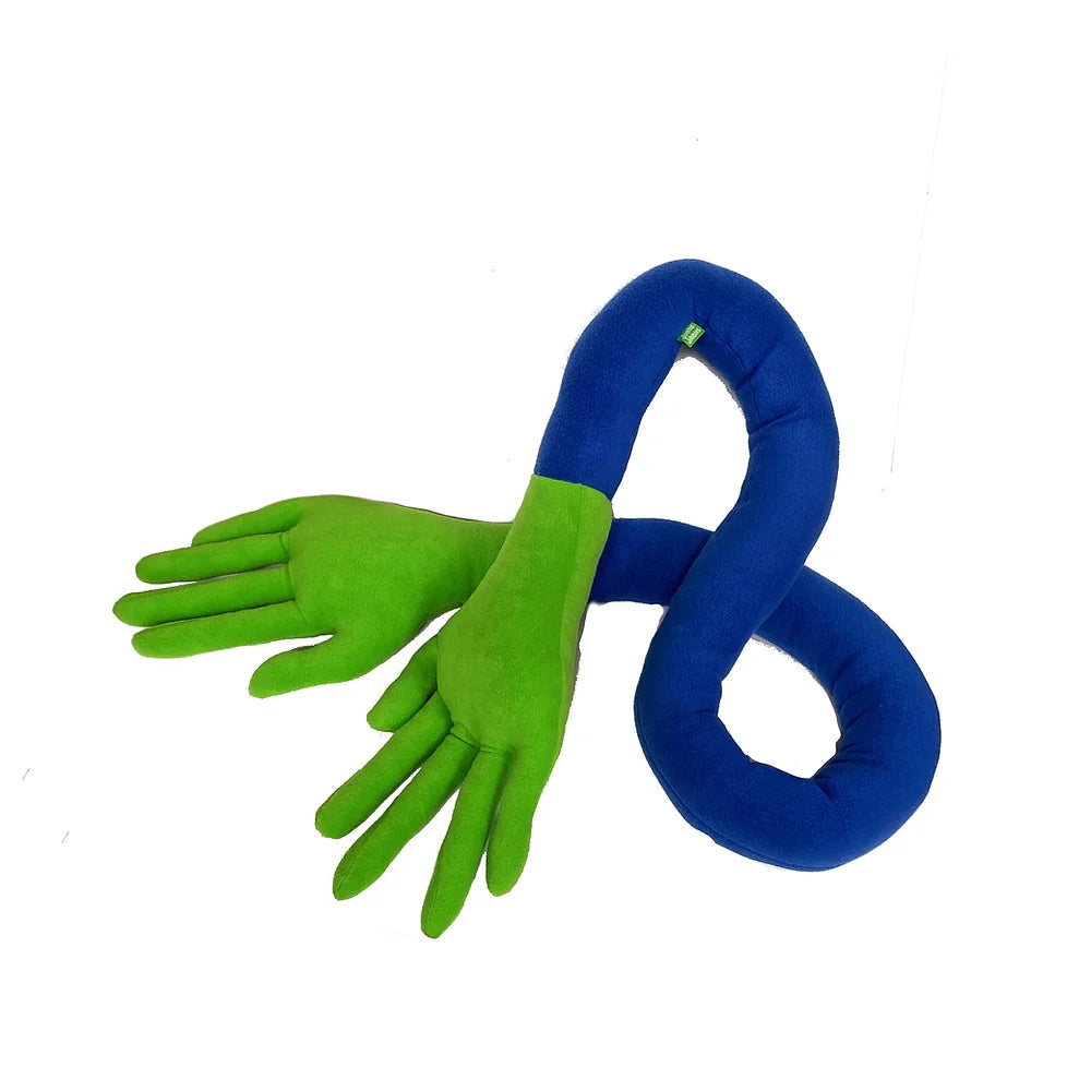 The Hand Pillow is a physical and visual pick-me-up on a hard day. Wrapping the 8 foot pillow around your body and tying gives you a real squeeze. its a hug when no one else is around.